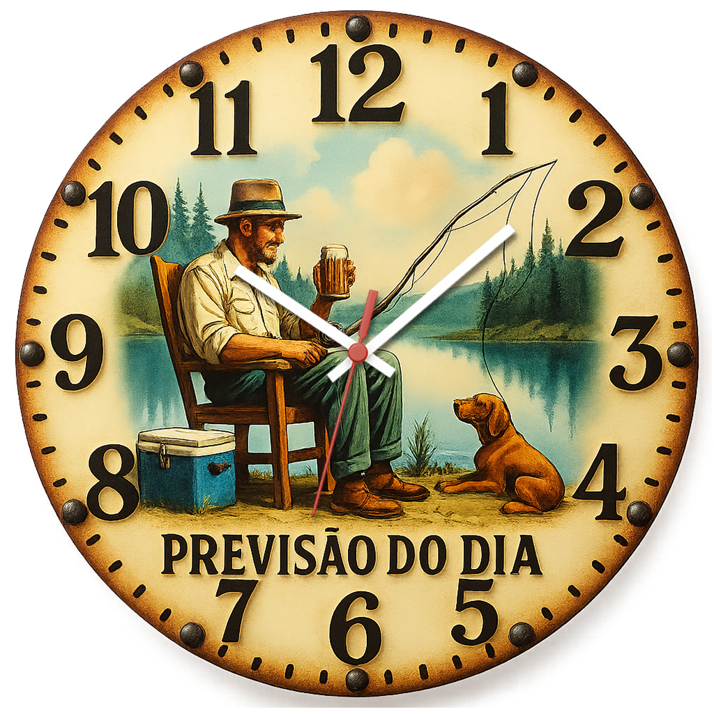 Relógio temático de pescador com arte descontraída, ideal para varandas, chalés e locais de descanso à beira do lago.Relógio temático de pescador com arte descontraída, ideal para varandas, chalés e locais de descanso à beira do lago.