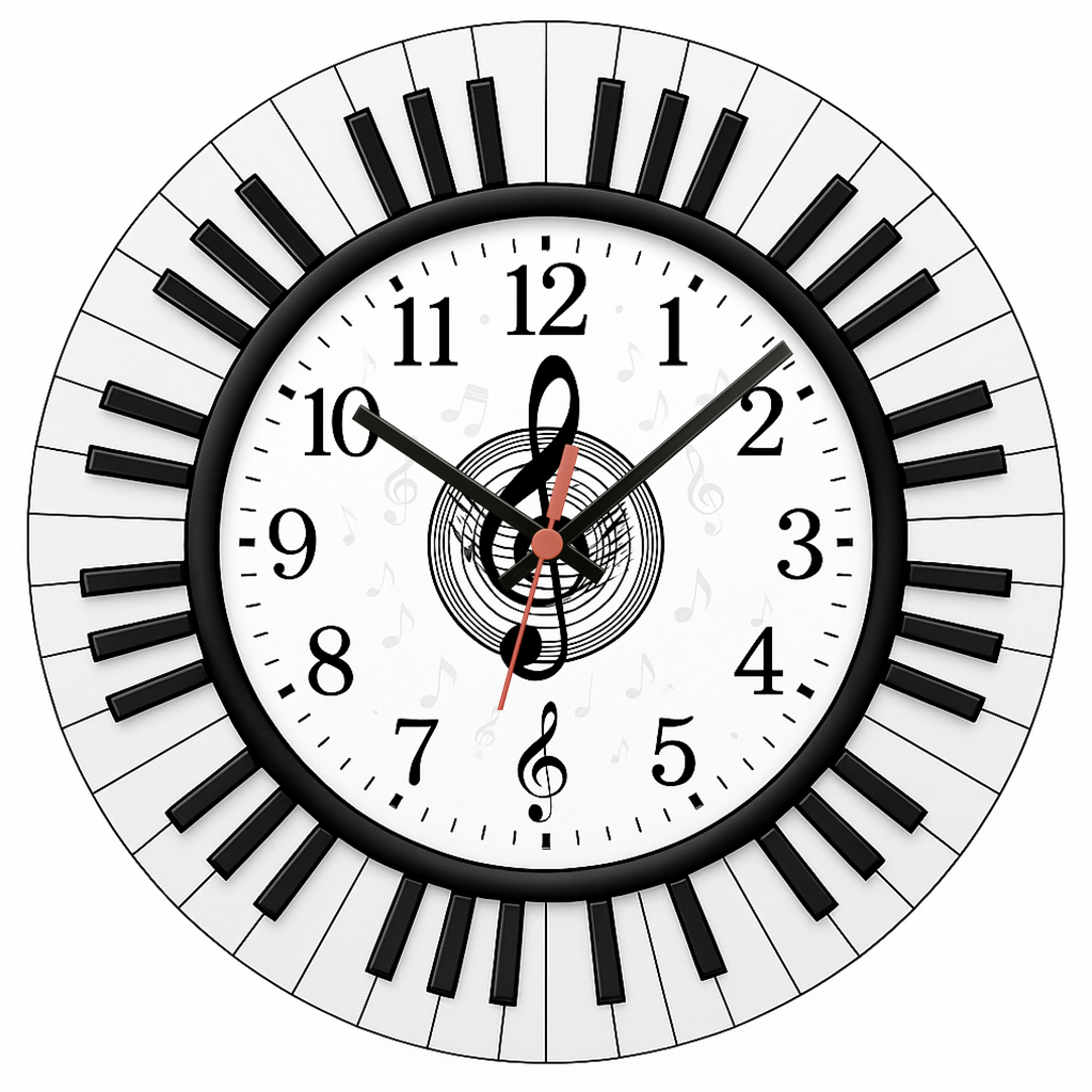 Relógio de Parede Música Piano Teclas em Volta