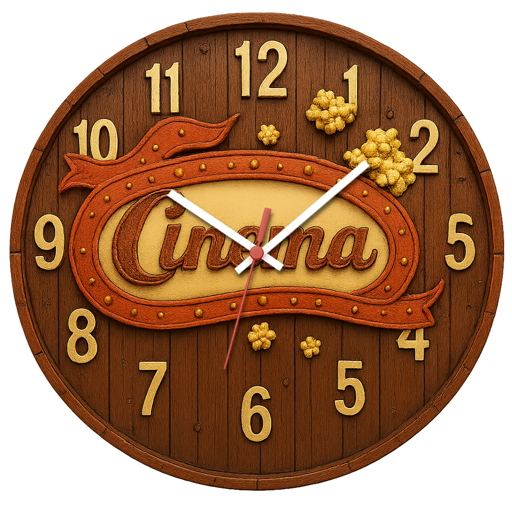 Design retrô com placa "Cinema" e textura de madeira. Um toque nostálgico para ambientes temáticos e aconchegantes.