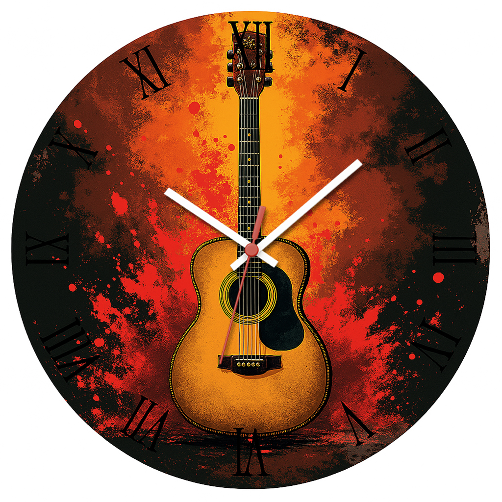 Relógio de Parede Música Violão Fundo Abstrato Laranja