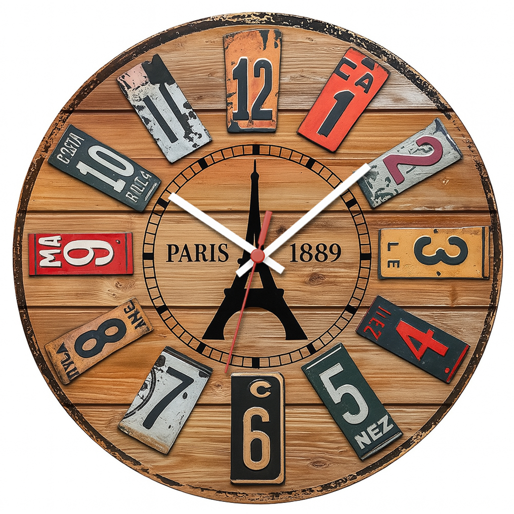 Relógio de Parede Países França Torre Eiffell Placa