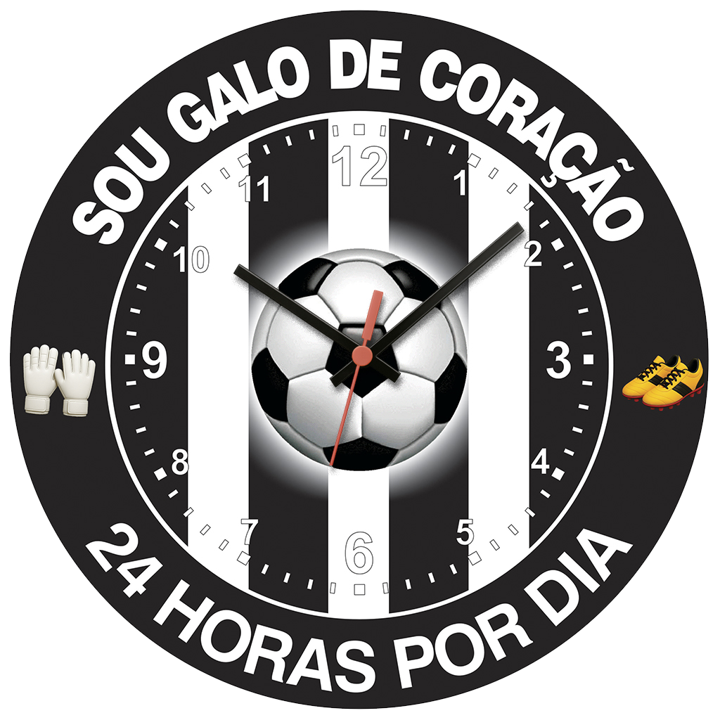 Relógio de parede com design do Atlético Mineiro, perfeito para torcedores que querem decorar com o estilo e a garra do Galo.