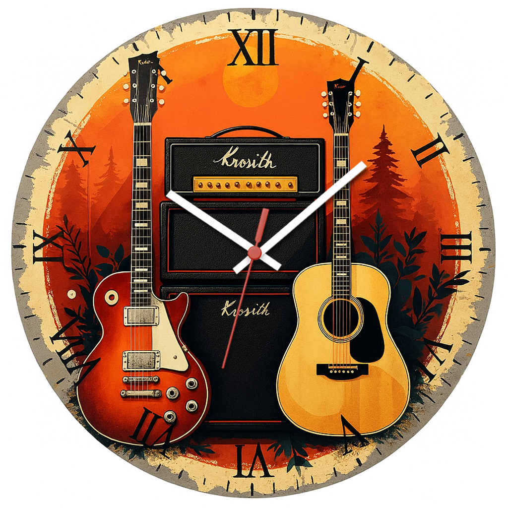 Relógio de Parede Música Guitarra e Caixa de Som