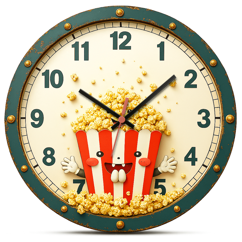 Balde de pipoca alegre e divertido com moldura verde retrô. Ideal para cozinhas, home theaters ou quartos criativos.