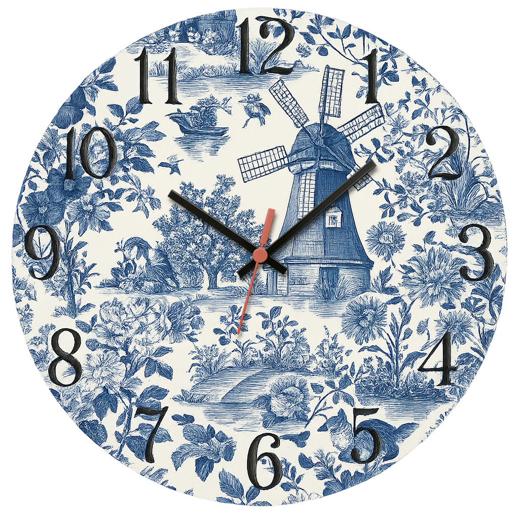 Relógio de Parede Países Holanda Moinho Estilo Azulejo