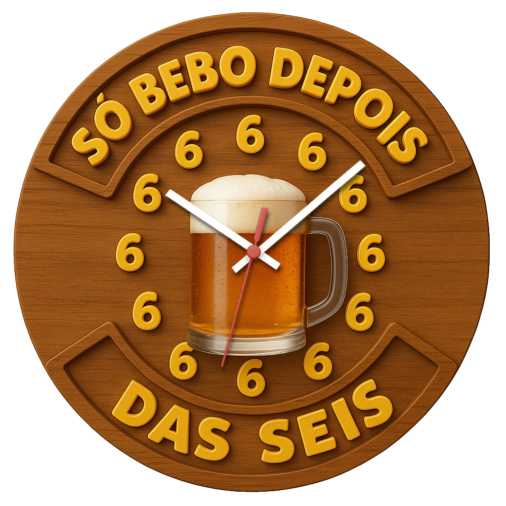 Relógio divertido com todos os números marcando “6”, ideal para descontração e bom humor em botecos e churrasqueiras