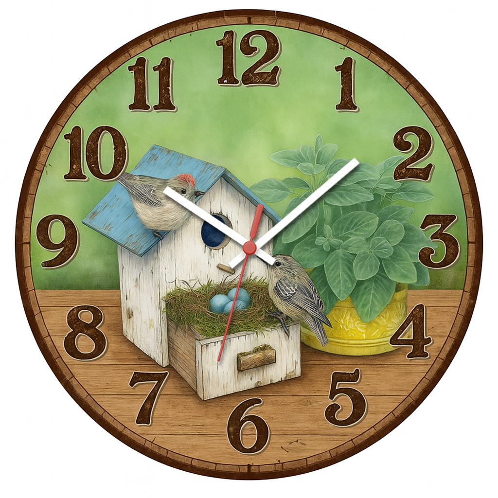 Relógio de Parede Passarinhos na Casinha – Arte Campestre