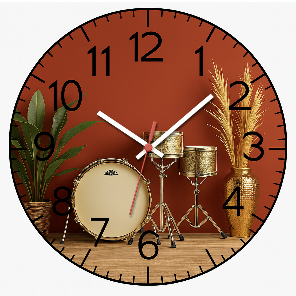 Relógio de Parede Música Bateria Decorativa Tambor Dourado