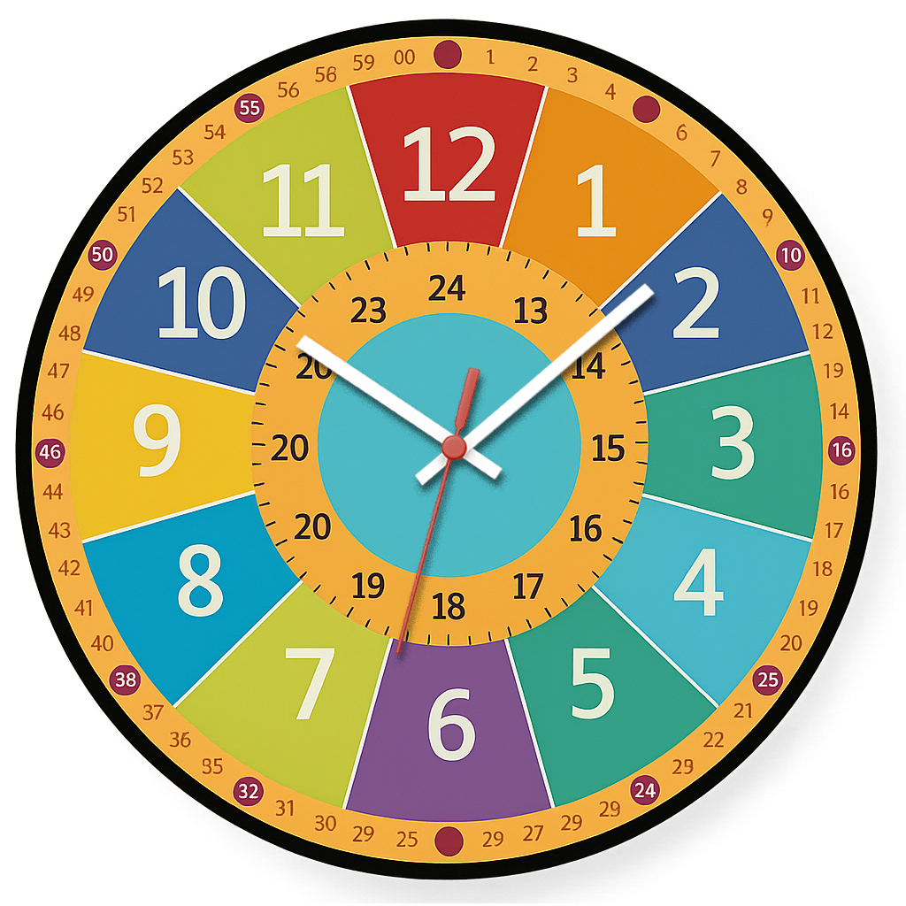 Relógio de Parede Matemática Relógio 24 Horas Colorido Educativo