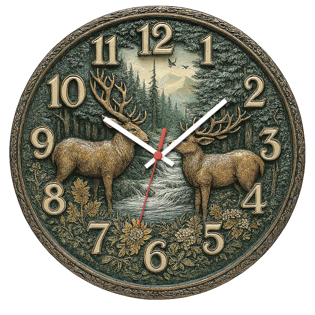 Cena campestre com veados em relevo, ideal para ambientes rústicos, salas e varandas de casas de campo.