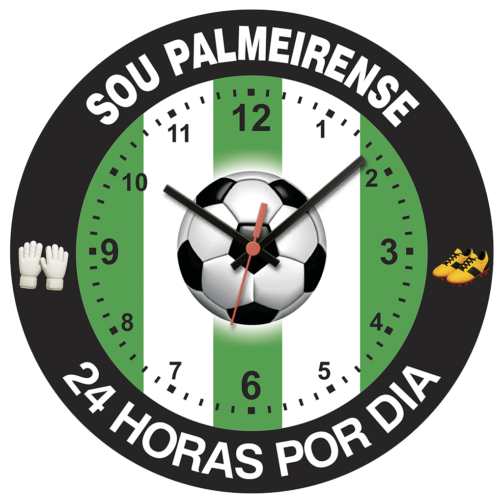 Relógio de parede com design do Palmeiras, feito para quem quer levar o verde da paixão alviverde para a decoração.